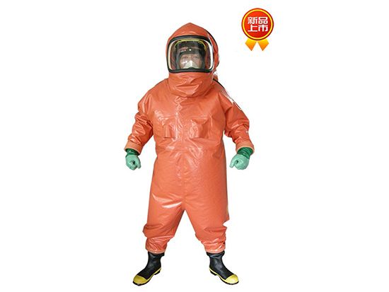 氣密重型防化服,雙面Hypalon?涂層面料(550g/m2),組件和接縫采用內/外部雙硫化密封,帶有高氣密性密封拉鏈,高強度、抗沖擊、高清晰度面屏,胸前部分配置雙排氣閥門。防護時間:防較強滲透性溶劑(甲苯等)、強酸堿(96%硫酸等)或強穿透性毒劑(芥子氣等)的時間≥2小時,防化靴防毒時間≥5小時,抗多種高濃度化學試劑滲透長達8小時以上,卓越的防酸堿性能,防火阻燃,耐UV/臭氧、抗曲饒龜裂、耐磨、防霧、防固體顆粒,浸水2小時以上不滲水,拉伸強度:徑向、緯向≥20KN/m。在-40℃~35℃范圍內可正常使用,保證穿著者的舒適及安全。